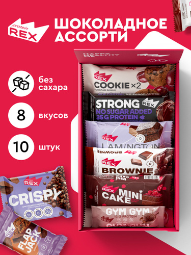 ProteinRex Протеиновые батончики и протеиновое печенье Ассорти шоколадное 10 шт., спортпит