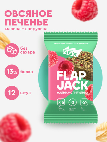 Протеиновое печенье без сахара ProteinRex Flapjack Малина-спирулина, 12шт шт х 60 г