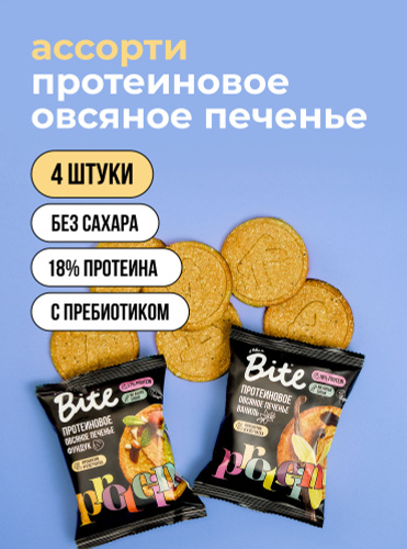Протеиновое печенье низкокалорийное овсяное Take a Bite Protein Pie 69 g, без сахара ассорти из 2 вкусов, 4 шт