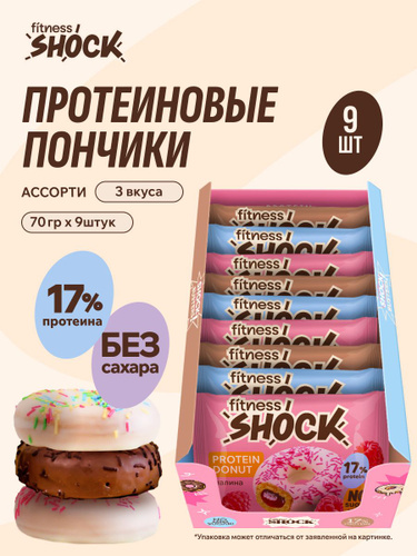 FitnesShock Протеиновое печенье без сахара пончики ассорти "Shock Busters", 9 шт