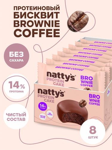 Nattys Протеиновое печенье Брауни без сахара Кофе, 8 шт