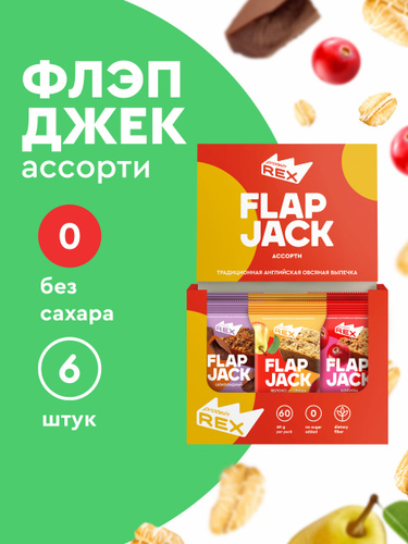 Протеиновое печенье без сахара ProteinRex Flapjack Ассорти, 6шт х 60 г