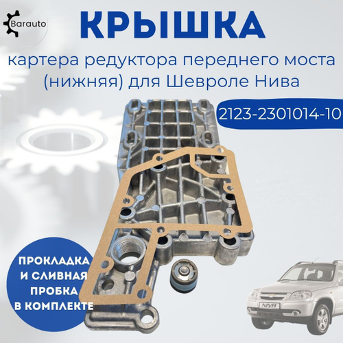 Крышка редуктора переднего моста (нижняя) ВАЗ LADA Chevrolet Niva (Шевроле Нива) 2123 в комплекте прокладка, сливная пробка магнитная.