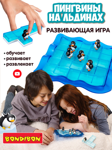 Развивающая настольная игра головоломка Bondibon ПИНГВИНЫ НА ЛЬДИНАХ БондиЛогика игрушка пазл в дорогу на развитие логического мышления