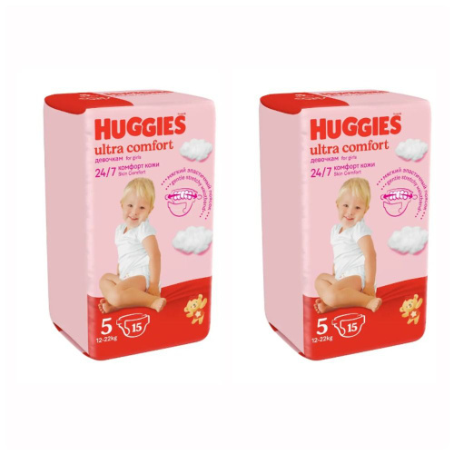 Huggies Подгузники Ultra Comfort для девочек, размер 5XL, 12-22 кг, 15 штук в упаковке, 2 уп /