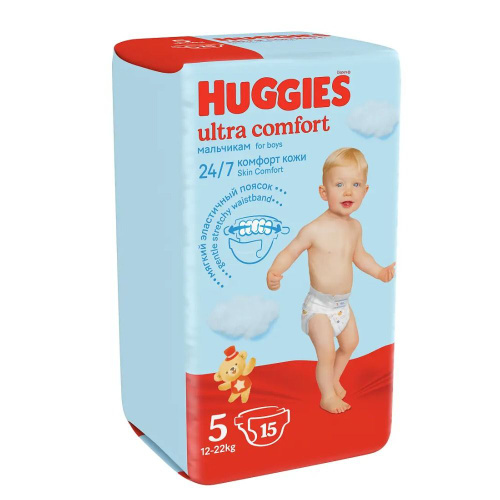 Huggies Подгузники Ultra Comfort для мальчиков, размер 5XL, 12-22 кг, 15 штук в упаковке/