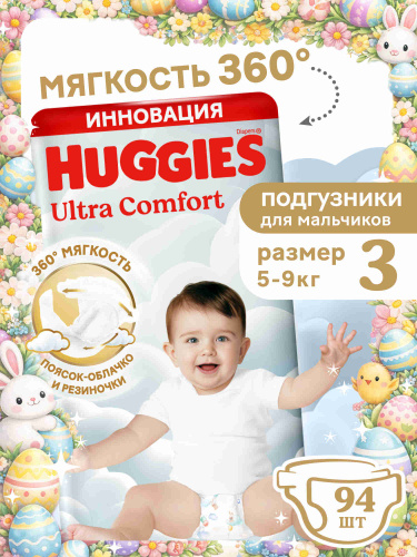 Подгузники Huggies Ultra Comfort для мальчиков 5-9кг, 3 размер, 94 шт