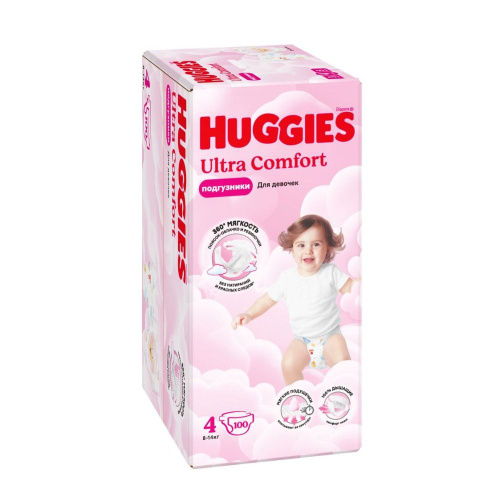 Подгузники Huggies Ultra Comfort для девочек 4 L размер, 8-14 кг, 100 шт