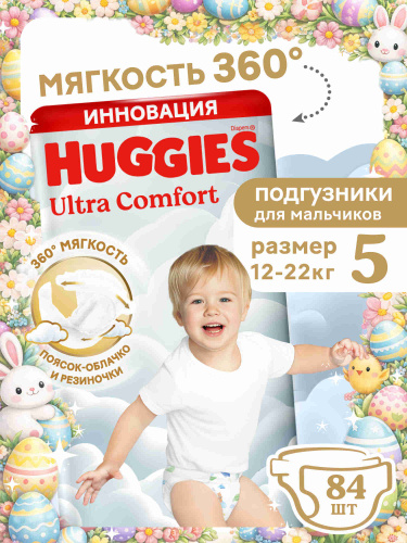 Подгузники Huggies Ultra Comfort для мальчиков 5 XL размер, 12-22 кг, 84 шт