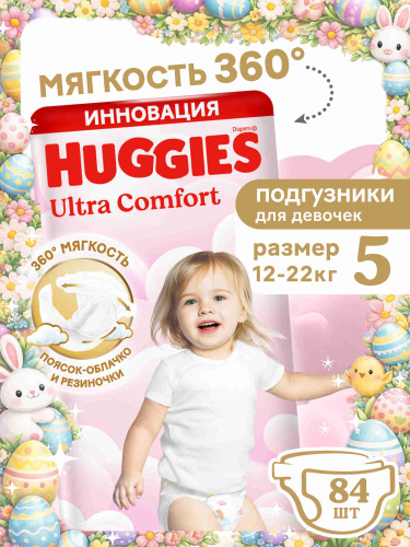 Подгузники Huggies Ultra Comfort для девочек 5 XL размер, 12-22 кг, 84 шт