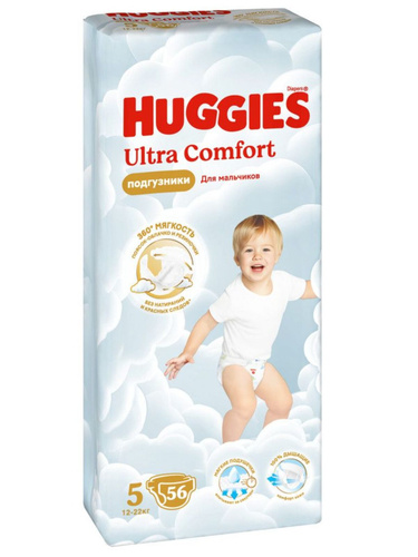 Huggies Подгузники для мальчиков Ultra Comfort, 5 размер, 12-22 кг, 56 штук в упаковке/