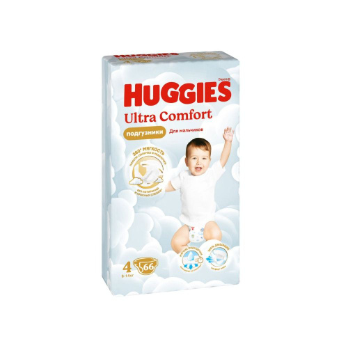 Huggies Подгузники Ultra comfort, размер 4, 8-14 кг, для мальчиков, 66 штук в упаковке