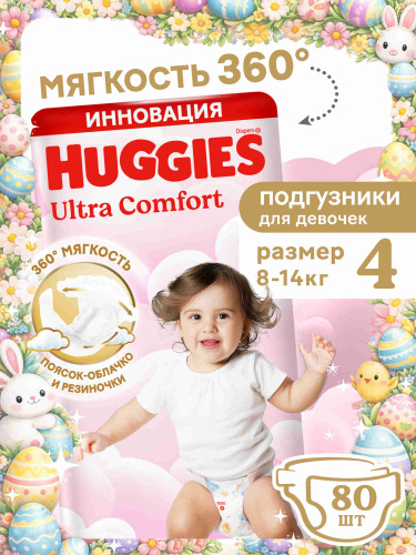 Подгузники Huggies Ultra Comfort для девочек 4 L размер, 8-14 кг, 80 шт