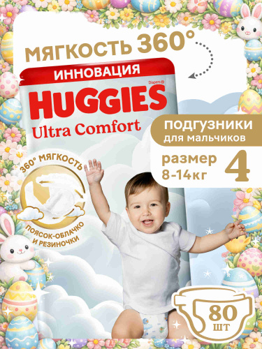 Подгузники Huggies Ultra Comfort для мальчиков 4 L размер, 8-14 кг, 80 шт
