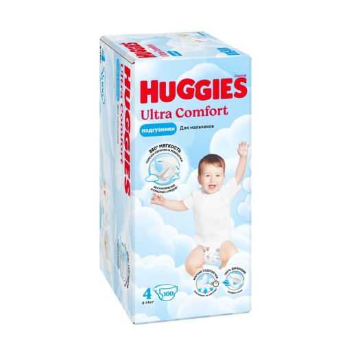Подгузники Huggies Ultra Comfort для мальчиков 4 L размер, 8-14 кг, 100 шт
