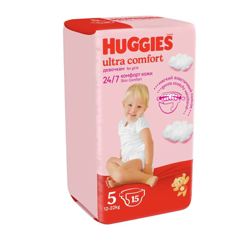 Huggies Подгузники Ultra Comfort для девочек, размер 5XL, 12-22 кг, 15 штук в упаковке/