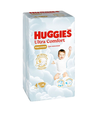Huggies Подгузники для мальчиков Ultra Comfort, 4 размер, 8-14 кг, 19 штук в упаковке/