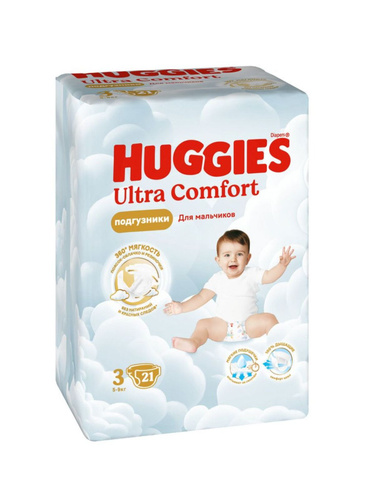 Huggies Подгузники для мальчиков Ultra Comfort, 3 размер, 5-9 кг, 21 штука в упаковке/