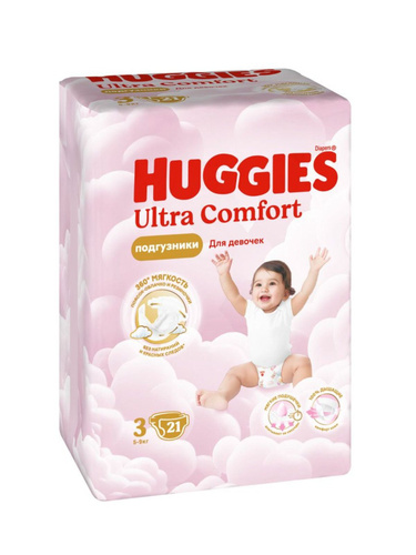 Huggies Подгузники для девочек Ultra Comfort, 3 размер, 5-9 кг, 21 штука в упаковке/
