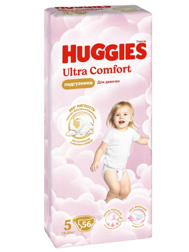 Huggies Подгузники для девочек Ultra Comfort, 5 размер, 12-22 кг, 56 штук в упаковке/