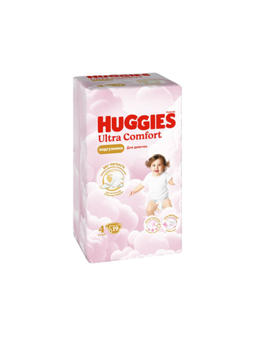 Huggies Подгузники для девочек Ultra Comfort, 4 размер, 8-14 кг, 19 штук в упаковке/