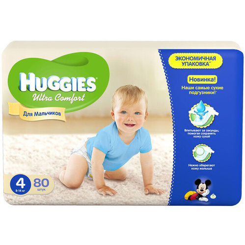 Huggies Подгузники Ultra Comfort 4 размер, 8-14 кг, M Maxi, для мальчиков, 80 штук в упаковке/
