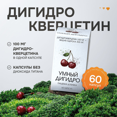 Дигидрокверцетин Умный Дигидро 100мг +ацерола 300мг 60 капсул антиоксидант