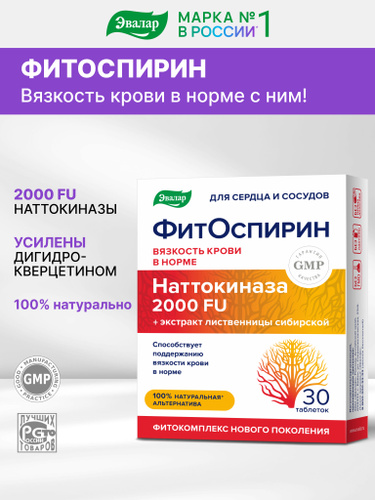 ФитОспирин Эвалар, наттокиназа 2000 FU, для разжижения крови, от тромбов, 30 таблеток