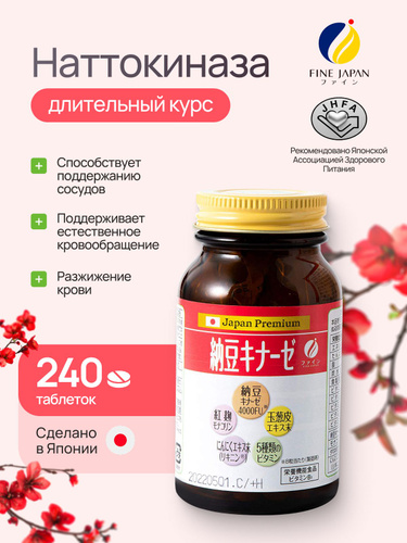 Наттокиназа Fine Japan, ферментированные бобы натто для чистки сосудов и разжижения крови. Японские таблетки для сердца, вен и мозга. 240 шт.