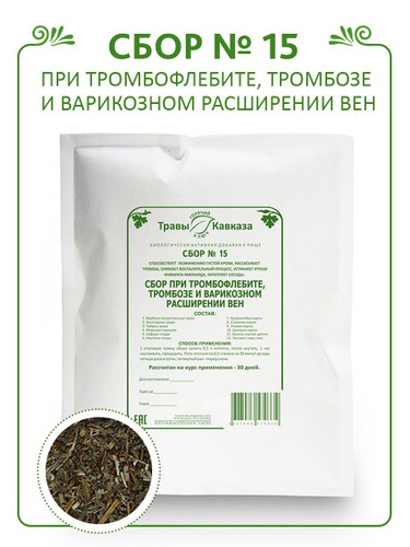 Травы Кавказа / Сбор трав № 15 При тромбофлебите, тромбозе и варикозном расширении вен, 200 гр., серия "Зеленая Аптека", для очищения и разжижения крови