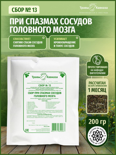 Травы Кавказа Сбор №13 при спазмах сосудов головного мозга, 200 гр.