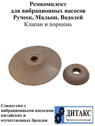 Ремкомплект для вибрационных насосов Ручеек, Малыш, Водолей (Клапан и поршень)
