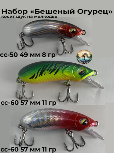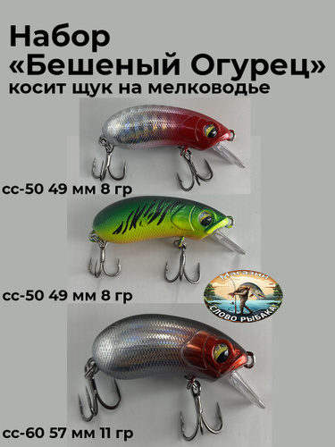 Воблер 3 штуки. Приманка на хищную рыбу для рыбалки "Бешеный Огурец"