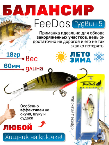 Балансир Гудвин 5 (60мм, 18гр) для летней и зимней рыбалки / горизонтальная рыболовная приманка для ловли хищника: щуки, судака, окуня / бюджетная уловистая приманка для облова закоряженных участков