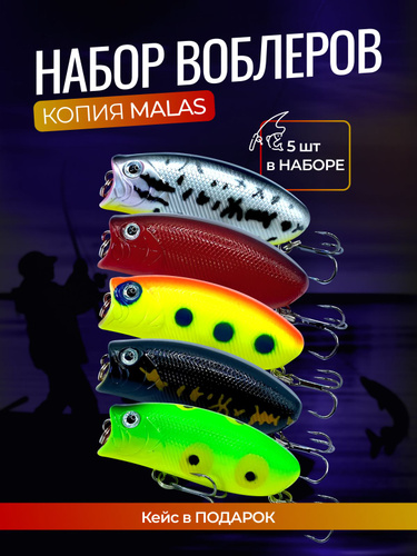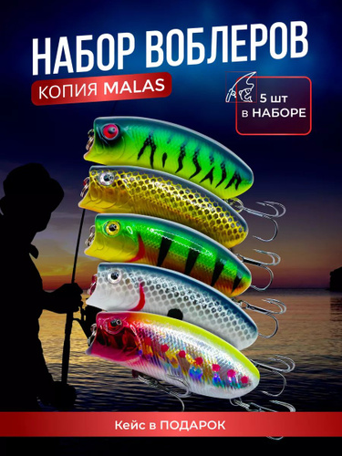 Набор воблеров для рыбалки "Малас" 5 шт., поппер на щуку, попер на окуня.