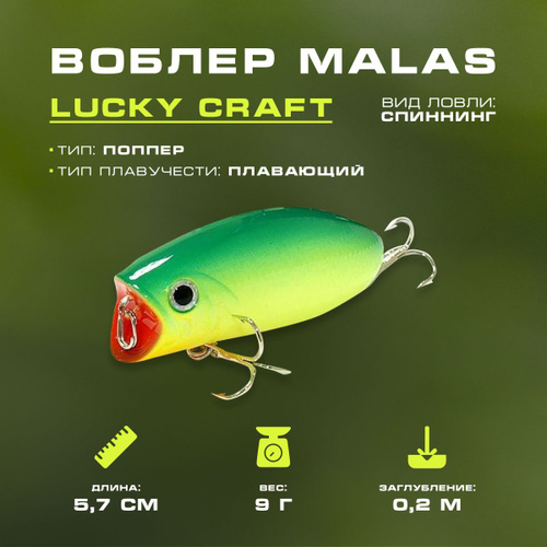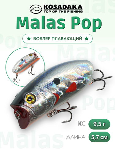 Воблер поппер Malas 57 mm 9g заглубление 0-0.3 на щуку, окуня , жереха, головля
