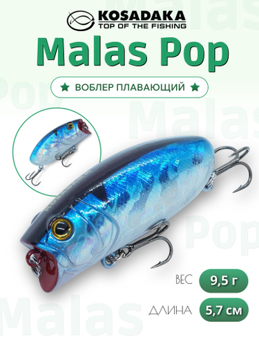 Поппер на щуку, воблер шумовой поверхностный Malas длина 57 мм, Вес 9 гр., цвет 17 Blue Dot