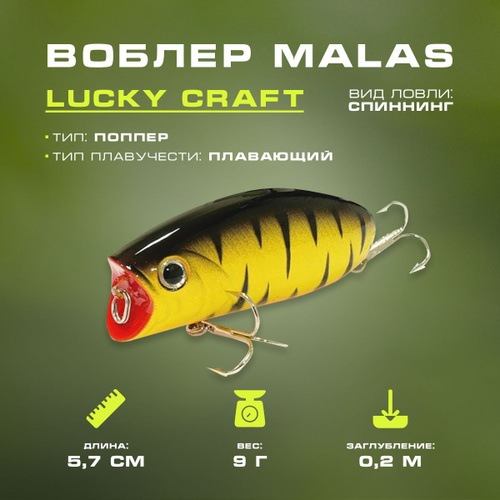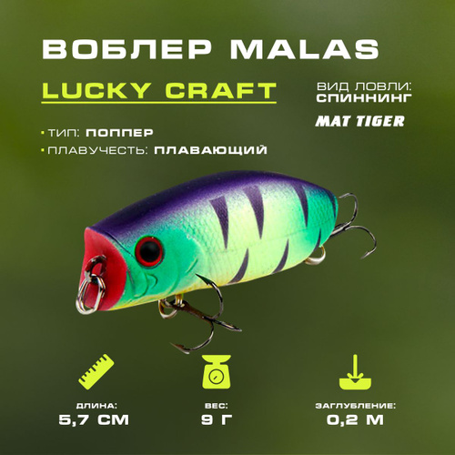 Поппер на щуку, воблер шумовой поверхностный Malas 57 мм, Вес 9 гр., цвет 22 Mat Tiger 509