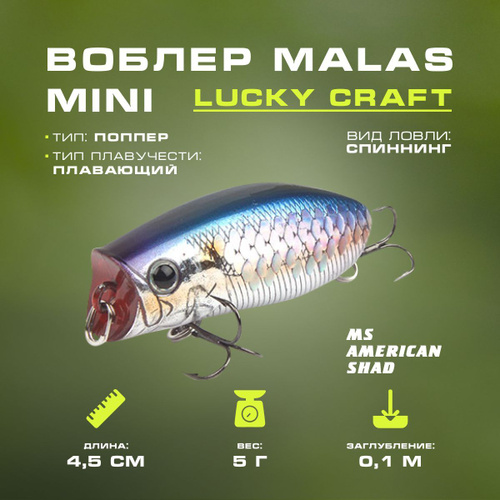 Воблер Malas Mini 270 MS American Shad 45мм, 5г, плавающий, 0,1м Lucky Craft воблер для рыбалки, приманка рыболовная
