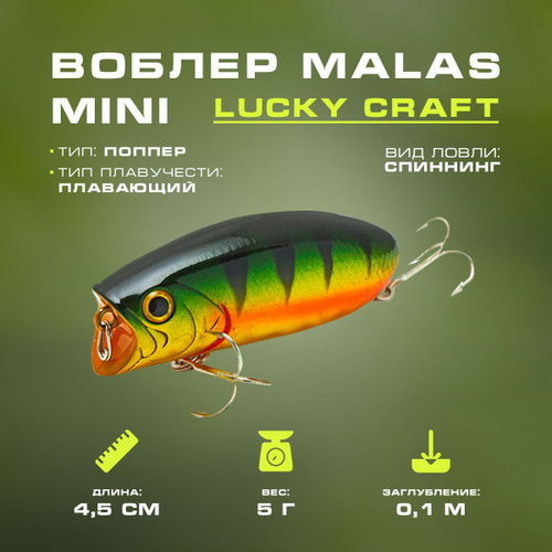 Воблер Malas Mini 884 Aurora Gold Northertn Perch 45мм, 5г, плавающий, 0,1м Lucky Craft воблер для рыбалки, приманка рыболовная