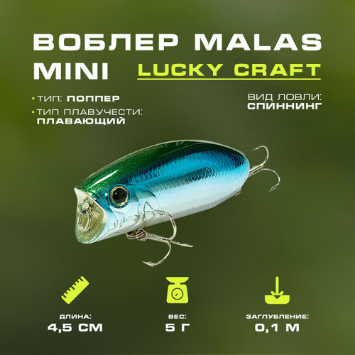 Воблер Malas Mini 0076 Metalic Mint 45мм, 5г, плавающий, 0,1м Lucky Craft воблер для рыбалки, приманка рыболовная