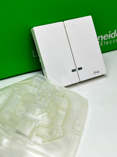 Клавиша IP44 Schneider Electric Merten System M двойная с окном индикации. Полярно-белая MTN3424-0319