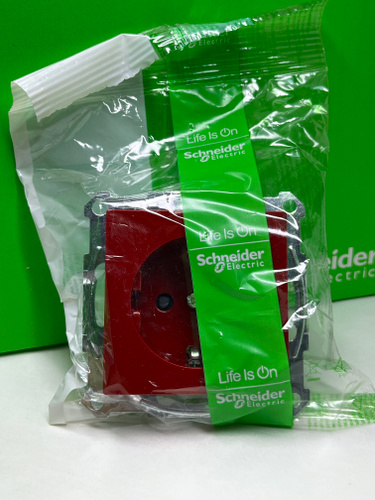 Розетка Schneider Electric "Schuko" Merten System M для спец. цепей, с защитными шторками. Рубиново-красная MTN2300-0306