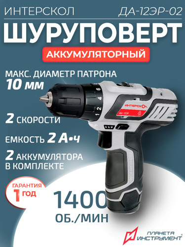 Аккумуляторный шуруповерт ИНТЕРСКОЛ ДА-12ЭР-02 2 аккумулятора (434.2.2.20)