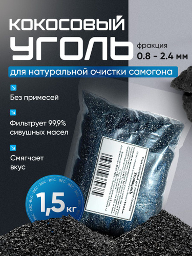 Уголь кокосовый для очистки самогона/ Уголь кокосовый активированный - 1,5 кг ( 1500 грамм ) / КАУ - А
