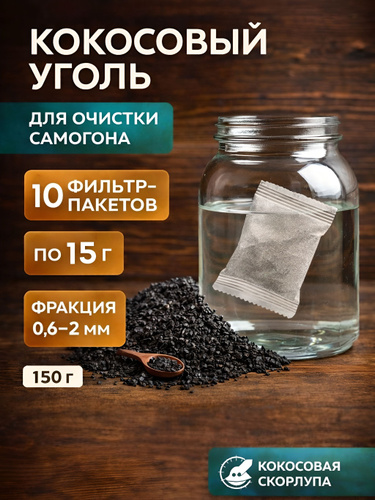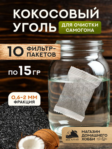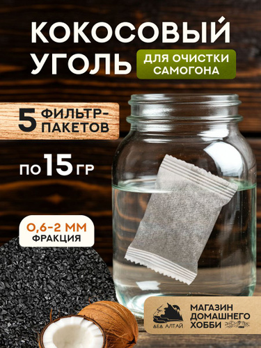 Кокосовый уголь КАУ в фильтр пакетах, для очистки самогона + 10 наклеек