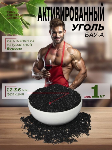 Уголь активированный березовый БАУ-А для очистки самогона, воды и напитков