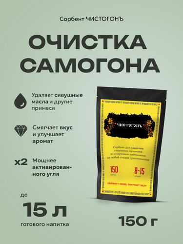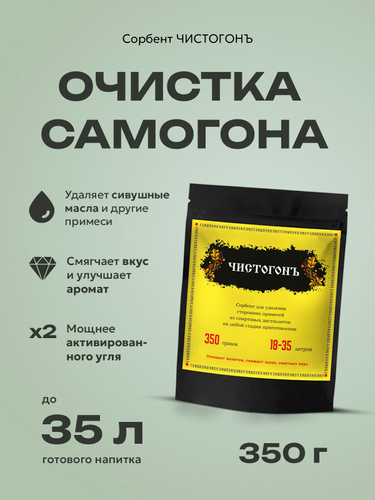 Ковелос "Чистогонъ" сорбент для очистки самогона и спирта, 350 г. Удаляет сивушные масла и примеси. Для дистиллятов до 80% крепости.