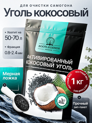 Уголь кокосовый активированный 1 кг PREMIUM BOOTLEGENDS для очистки самогона