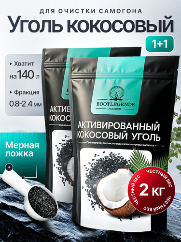 Уголь кокосовый активированный 2 кг PREMIUM BOOTLEGENDS для очистки самогона